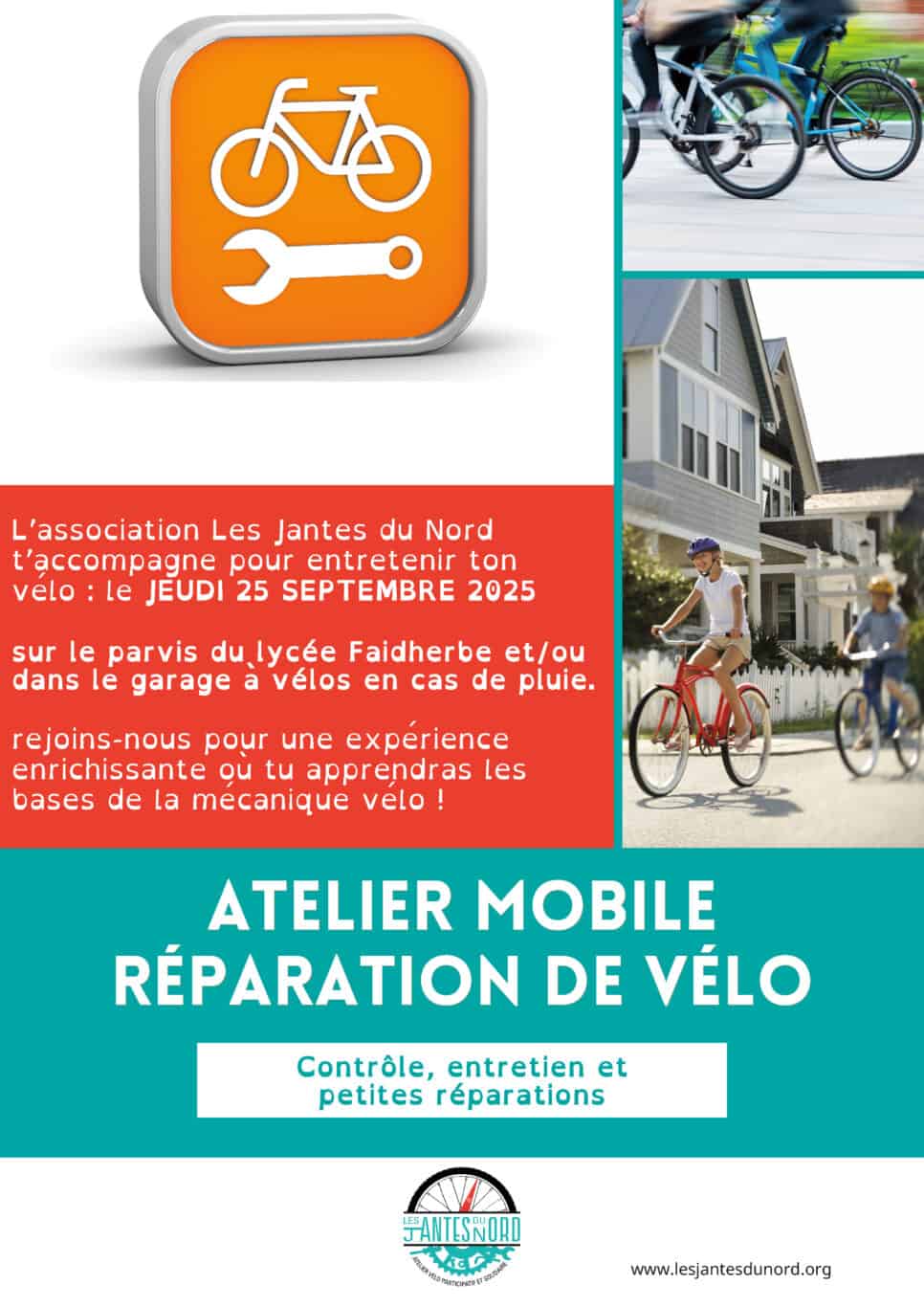 L’association Les Jantes du Nord sera là pour examiner votre vélo, procéder à des réglages ou le réparer en cas de petits problèmes (freins, lumières, vitesses, chambres à air, roues voilées), tout en vous montrant comment le faire vous-mêmes à l’avenir.